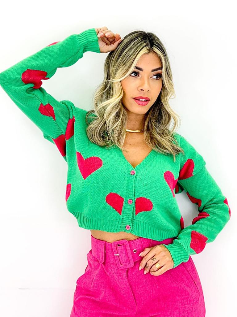 Casaco Coração Tamanho Unico vestindo ate o 46
