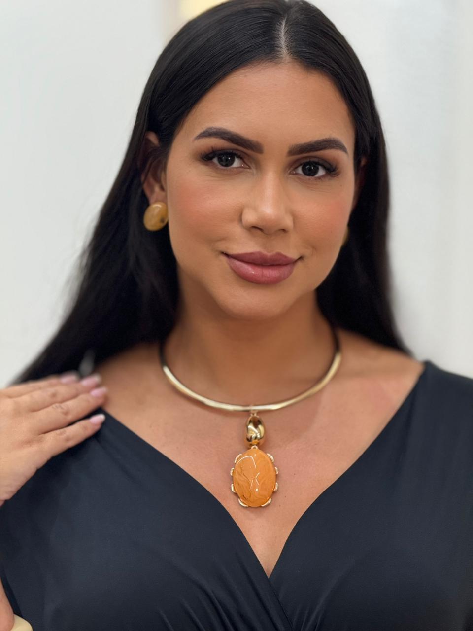 CONJUNTO FOLHEADO ARO OVAL RESINADO CITRINO