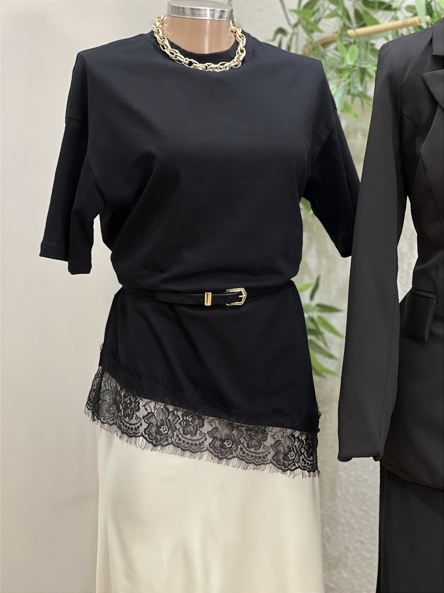 NOSSA T-SHIRT EM ALGODÃO É A TENDÊNCIA DA TEMPORADA. COM UM CAIMENTO LEVE E CONFORTÁVEL, ELA SE DESTACA PELO ACABAMENTO NA BARRA, QUE TRAZ UMA FINALIZAÇÃO COM RENDA, DANDO UM TOQUE SOFISTICADO E MODERNO AO VISUAL.
