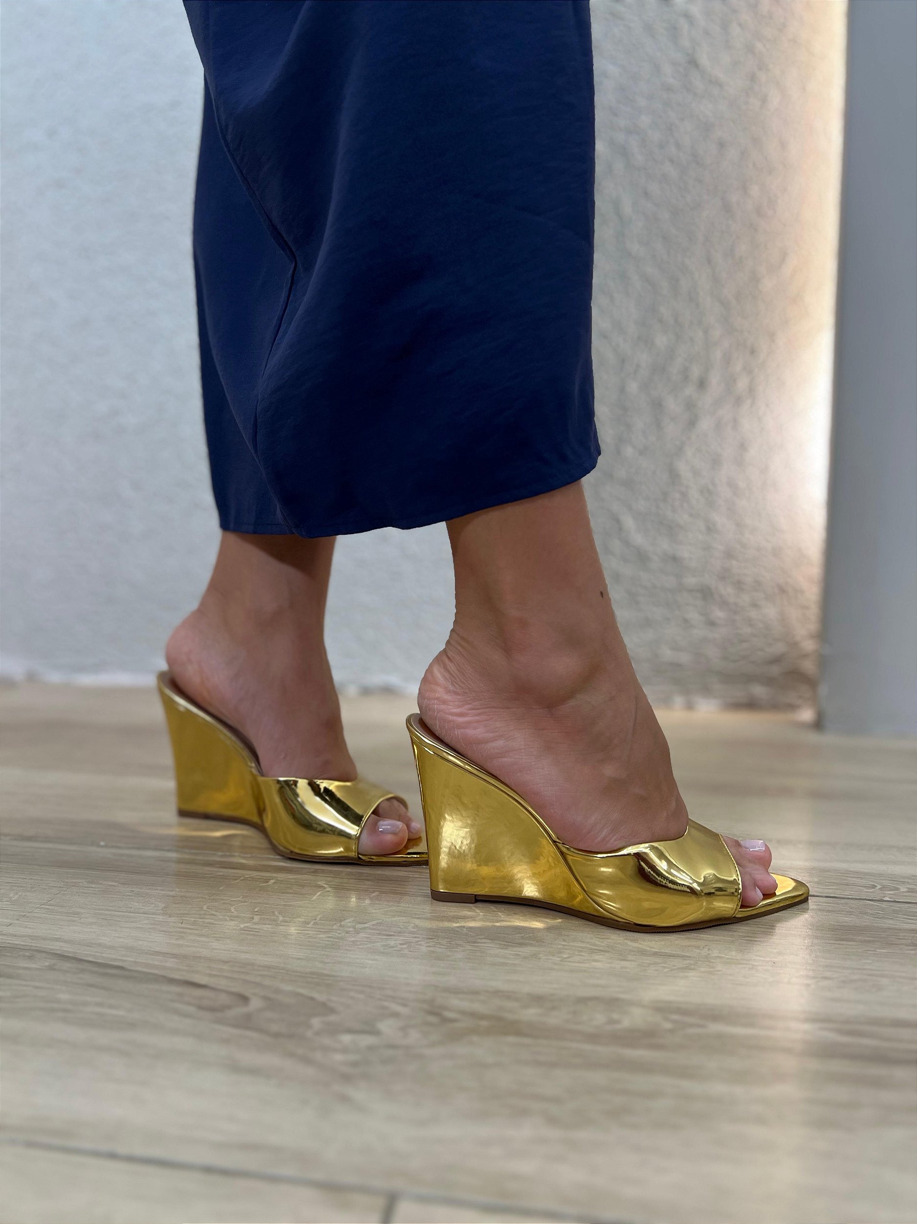 O salto anabela proporciona estabilidade e alonga a silhueta, ideal para compor desde looks casuais até produções mais elegantes.
