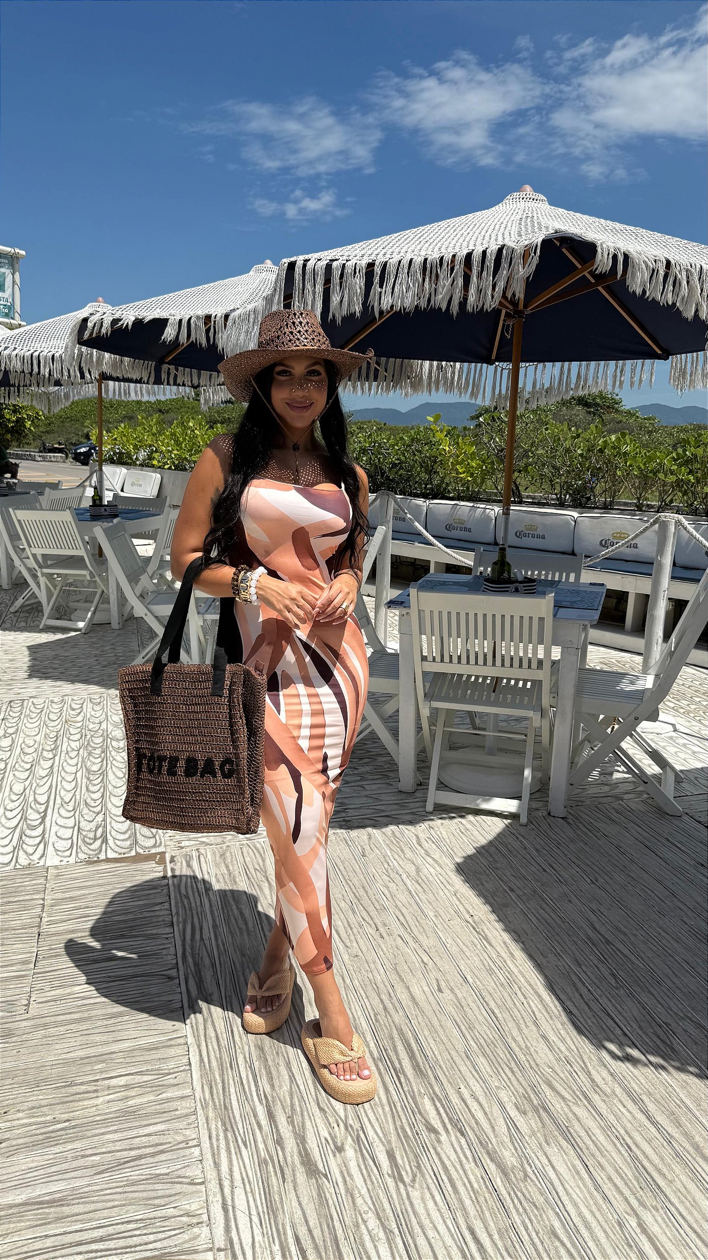 O modelo conta com bojo, garantindo sustentação e valorização do busto, enquanto a amarração nas costas permite ajuste personalizado e acrescenta charme ao design. Sua modelagem acompanha a silhueta de forma leve e fluida, ideal para diferentes ocasiões.